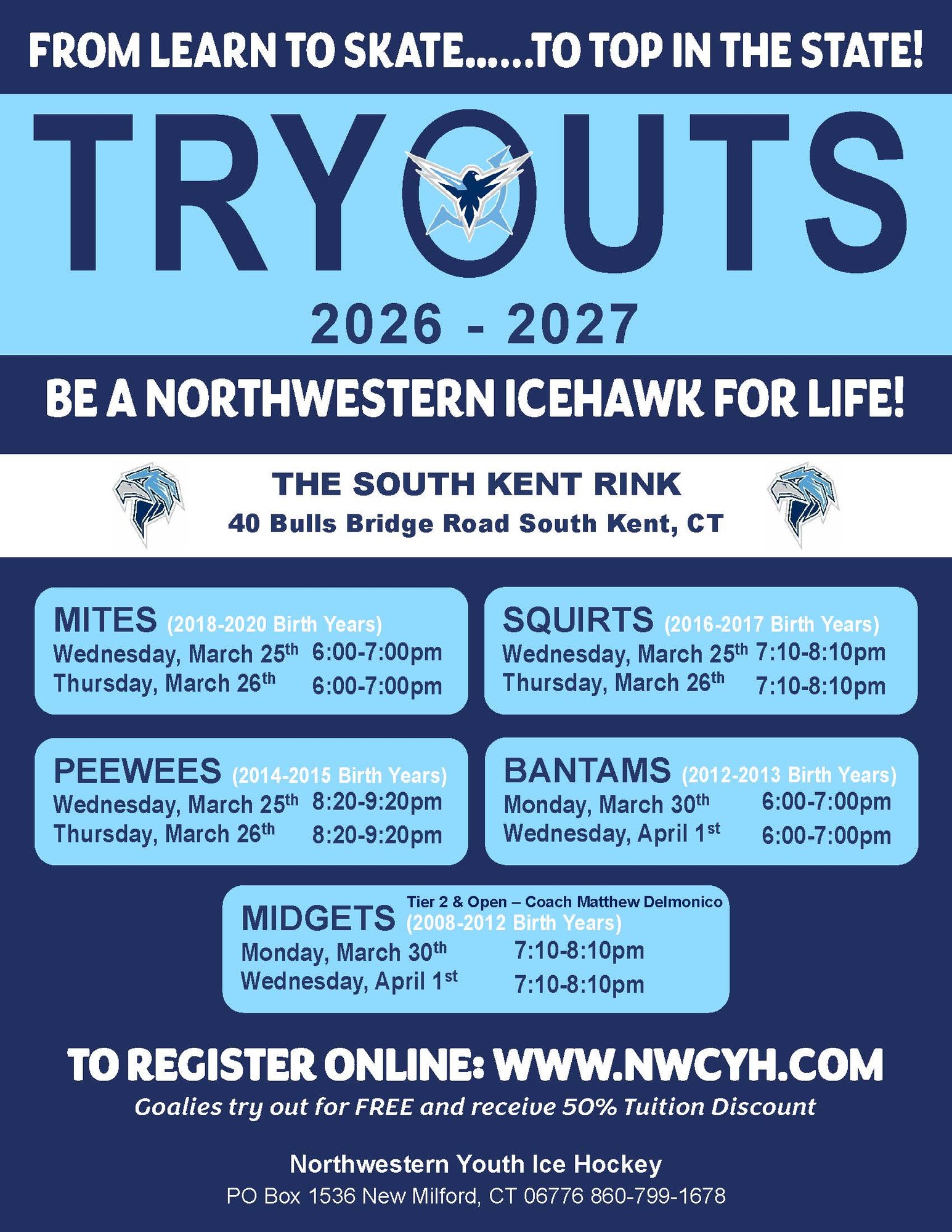 Goalies are FREE to tryout!